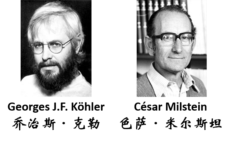 1975年,德国科学家Georges J. F. Kölhler和阿根廷/英国科学家César Milstein在英国《自然》杂志上发表了题为“分泌具有预定特异性抗体的融合细胞的持续培养”(Continuous cultures of fused cells secreting antibody of predefined specificity)的著名论文。他们大胆地将次黄嘌呤-鸟嘌呤磷酸核糖转移酶(hypoxanthine guanosine phosphoribosyl transferase,HGPRT)缺陷型的骨髓瘤细胞株与经绵羊红细胞免疫的小鼠脾脏细胞进行融合,融合由仙台病毒介导。融合后的细胞在含有次黄嘌呤(hypoxanthine,H)、氨基喋呤(aminopterin,A)和胸腺嘧啶核苷(thymidine,T)的培养基(HAT)中生长进行选择。只有骨髓瘤细胞与脾细胞形成的杂交瘤细胞因得到分别来自亲本脾细胞的HGPRT和亲本 骨髓瘤细胞的连续继代特性,而在HAT培养基中存活下来。
